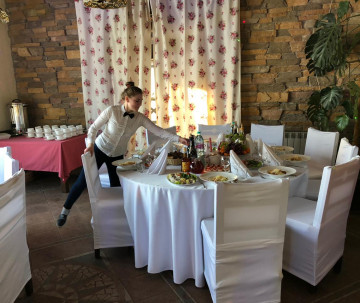 Если Вы желаете провести романтический ужин при свечах или семейный ужин, шум праздника останется за закрытыми дверями, а вы, сидя у камина в соседнем зале с завораживающим видом на озеро, будете наслаждаться обществом близких людей и вкусом блюд.