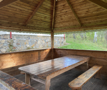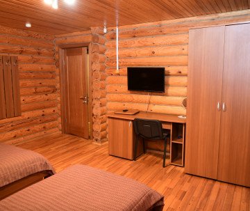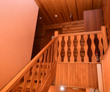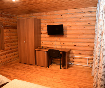 Отдыхать в коттедже можно совершенно автономно. Коттедж "Премиум" располагает собственной кухней, беседкой - барбекю, парковкой. На первом этаже здания размещаются вместительная гостиная с кухней, один санузел, одна спальня для двоих гостей. На втором этаже ещё 3 спальни и второй санузел. Спальни укомплектованы двуспальными кроватями. Санузлы оборудованы всем необходимым, включая душевые кабины. В гостиной есть телевизор, музыкальный центр. В кухонном гарнитуре Вы найдёте комплект посуды. Для связи с администратором отеля в шале имеется телефон.