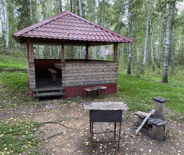 Коттедж, построен в отдалении от пешеходных тропинок среди берёз. Стиль шале подразумевает каменный первый или цокольный этаж и деревянный второй. Отделка фасадов и интерьеров выполняется из естественных природных материалов с минимумом современных деталей. Такой стиль способствует отдыху и релаксации за счёт расслабления глаз. Популярность шале, возможно, объясняет тот факт, что в каждом жителе России до сих пор живы корни деревенского жителя, имеющего собственный дом.